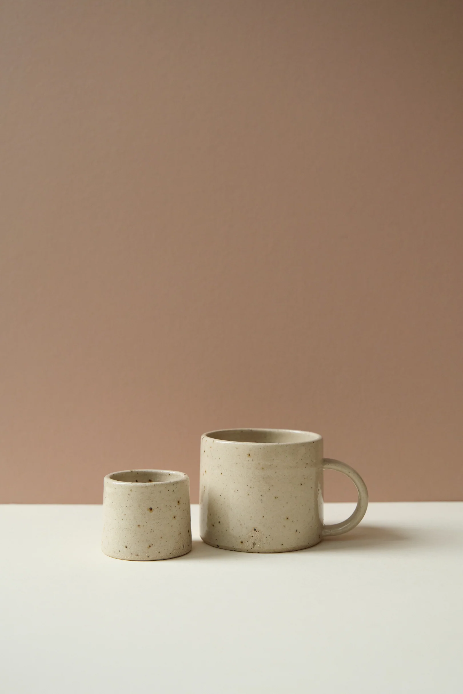 A handy espresso or cortado cup made from speckled stoneware with a clear gloss glaze all over. The base features unglazed fingermarks which are a subtle sign of the handmade nature of each piece.
