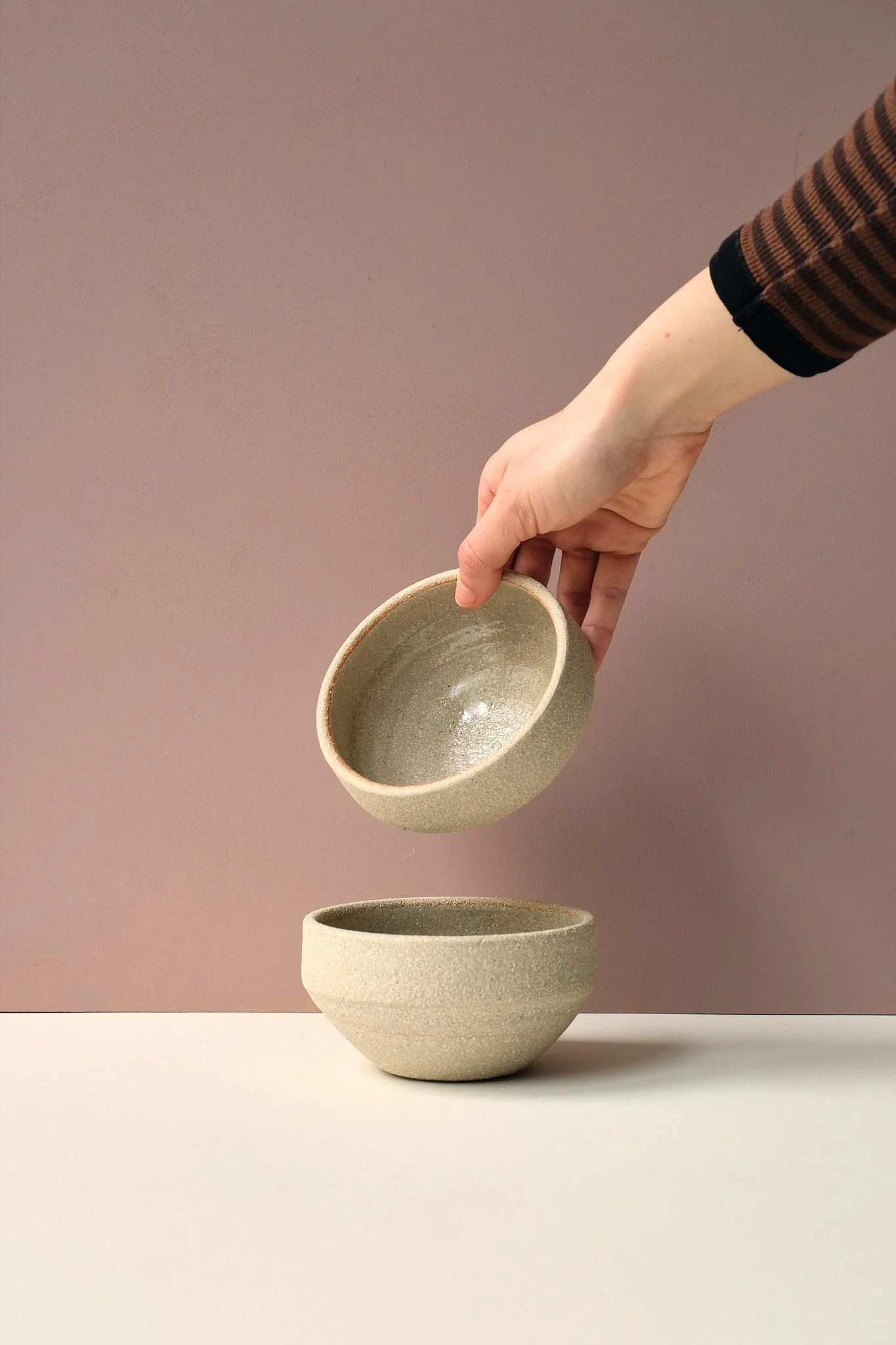 These small rounded bowls are perfect for your morning porridge, desserts and small snacks. Made from a satisfyingly heavyweight grogged clay with a rough unglazed outer and transparent glaze inside.