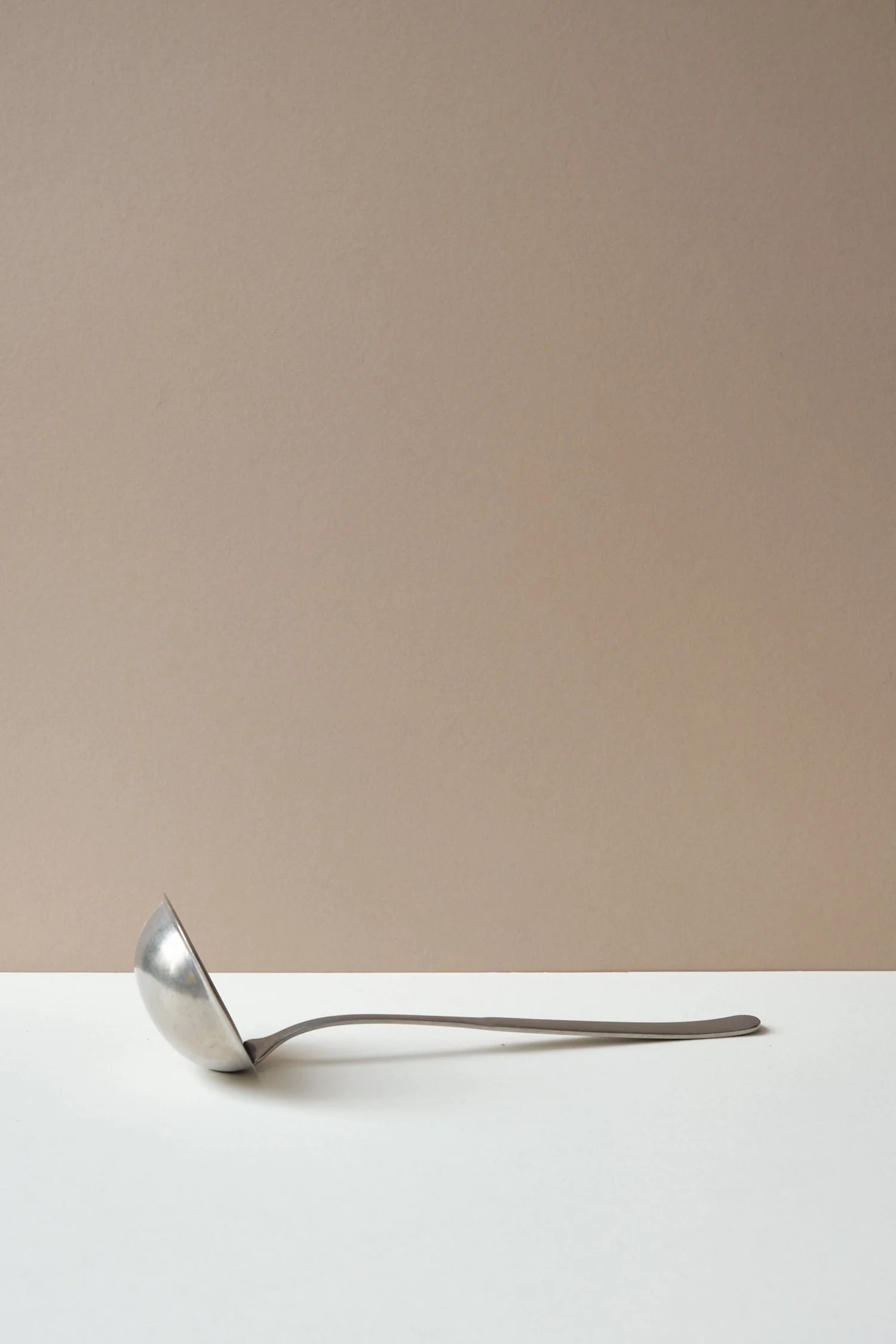 A lightweight Stainless Steel ladle in a stone washed finish. Great for serving soups and stews at the table.